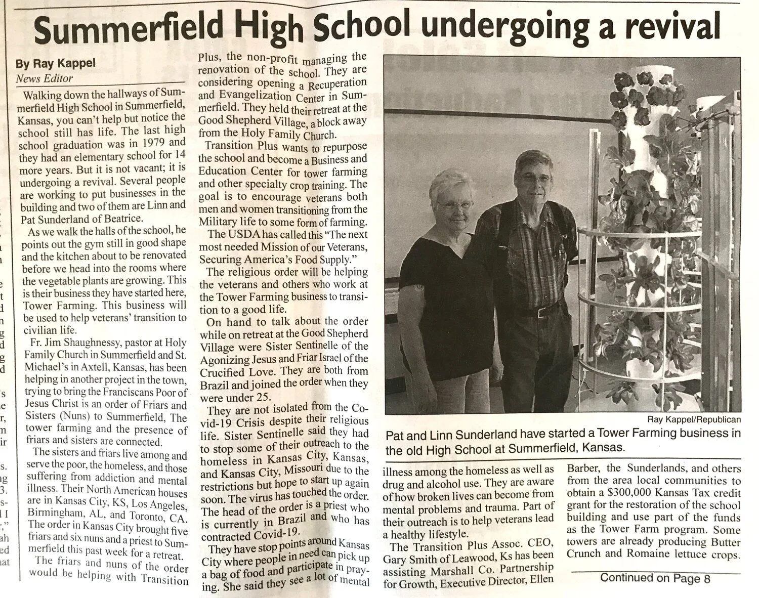 The City of Summerfield is allowing us to use the former school building rent free as we provide the maintenance. We are developing a Shared Community Kitchen and will use the classrooms to house part of the Tower Farm that is being established. The produce will grow under special lights. The rooms will allow for storage and packaging and getting it ready for distribution. The gym will be for the community's use and the veteran's use. The football field will eventually house a full-size Commercial Greenhouse with state-of-the-art Aeroponic Towers for farming all kinds of produce. It will bring fresh, local produce to a food desert area.